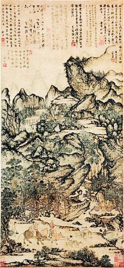 简介:《稚川移居图》描绘了东晋葛洪携带家眷移居罗浮山,修道炼丹的故事。画上有与王蒙同时或稍后的七位大学者、大画家或大诗人如韩性、倪瓒、陶复初、陈则等人的题诗。此外,《稚川移居图》上还有明代大收藏家项元汴近20余枚收藏印,极为珍罕难得。