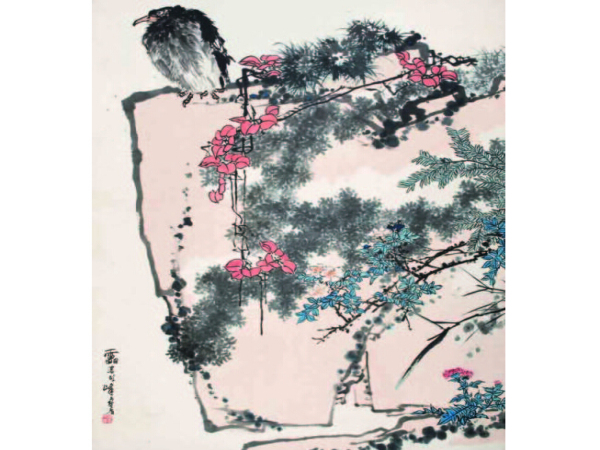 简介:《鹰石山花图》创作于上世纪60年代,是潘天寿艺术生涯的巅峰之作,亦是其“中西绘画要拉开距离”理念的最佳诠释。此画采用了潘天寿独创的山水与花鸟相结合的创作图式。所写内容则由其花鸟画中经典的鹰石、山花、野草等元素构成,舍去了文人画逸笔草草的随性,在当时反传统呼声此起彼伏的大环境下,最大限度地结合传统养分与时代精神,开拓出全新的花鸟画创作体系。