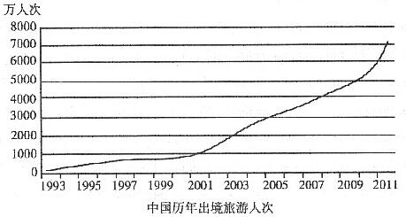 From the chart given above, we can observe that the number of people travelingabroad experienced some changes during the past several years. From 1993 to2003, the number of Chinese people choosing overseas destinations for theirholidays increased rapidly from less than 5 million to 20 million, and then to70 million in 2011.