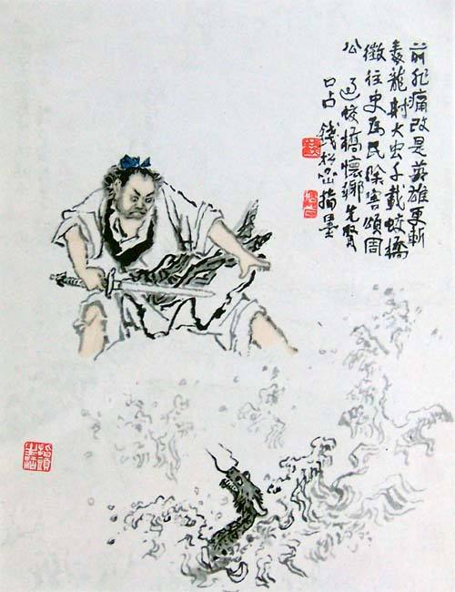三国时有个人叫周处,他在义兴非常出名。当然他出的不是美名,而是恶名。因为他个子比较高,从小就死了父亲,没有读书的机会,人很野蛮,动辄就用拳头打人,老百姓都害怕他。义兴的河中有条蛟龙,山上有只白额虎,再加上周处,这三者一起危害百姓,当地称之为“三大祸害”。  后来有人想了个办法,劝说周处去杀死猛虎和蛟龙,希望三个祸害通过内战互相残杀。于是周处立即杀了猛虎,又下河去斩蛟龙。周处同蛟龙一起搏斗,三天三夜都没有出来,当地百姓都认为他死了,高兴地对此表示庆贺。结果周处杀死蛟龙后,从水中出来了,听说乡人为自己已死而庆贺,方知大家把他当作祸害,因此有了悔改之意。后来他寻访有修养的名人陆云,听从他的教导,洗心革面、改过自新,最终成了非常了不起的忠臣,为老百姓做了很多有利的事情。