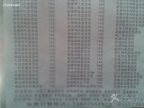 比如在有一次出去吃饭的时候,我走进一个很廉价的盖浇饭餐厅,见到了这种菜单: