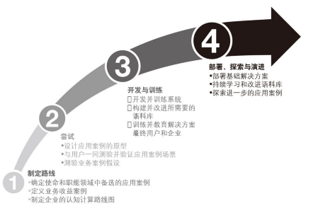 认知计算的机遇非常有吸引力。根据从领先的早期采用者学习到的宝贵洞察和经验,我们推荐采用四个步骤进行实施。随着企业向未来的认知系统演进,企业必须记住:认知计算是一个过程,而且是随时间推移而不断演进的过程。这一指导原则应在企业内不断强化。因此,所有这些步骤的基础是积极的变革管理战略和计划。