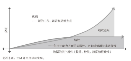 传统分析虽然在很多领域较为有效,但在开发成倍扩张的数据的全部价值方面有局限性。大数据已经成为新的自然资源。9而且这种资源在数量、多样性和复杂性方面快速发展。业务数据预计每一两年就将翻倍。10许多零售商缺乏充分利用可用数据的能力,这就导致出现了绩效差距(见图7.4)。