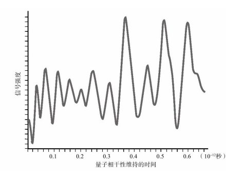 2007年,格雷厄姆·弗莱明和他的同事在实验中看到的量子节拍。虽然图中的震荡曲线形状不规则,但是重点在曲线呈现出“震荡”这一特点本身。