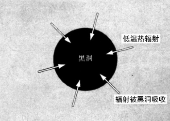 图1.17 黑洞在和热辐射接触时会吸收一些辐射,但是在经典水平上不能发射出任何东西。