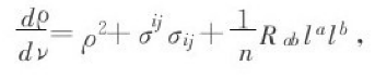 此处ν是沿着一簇测地线的仿射参量,其切矢量la是超面正交的。量ρ是测地线平均收敛率,σ是切变的测度。项Rab lalb是物质对测地线收敛的直接引力效应。