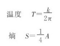 ,是准确的热性的。这正是使黑洞具有和它事件视界面积成比例的熵的观念协调所亟需的东西。它还把该比例常数确定为在普朗克单位下的四分之一,在普朗克单位中G=c=h=1。普朗克单位的面积是10-66平方厘米,这样具有太阳质量的黑洞具有数量级为1078的熵。这反映了可能制造该黑洞的极其巨大数目的不同方式。
