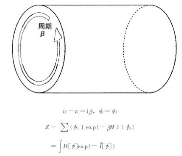 图3.7 对在虚时间方向具有周期β=T-1的欧氏时空上的所有场求和的路径积分,可以得到温度T下的配分函数。