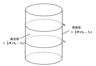 M(τ2-τ1)。这样总作用量是M(τ2-τ1)(图3.9)。如果把这个对配分函数对数的贡献代入热力学公式,就会发现能量平均值为质量,正如所预期的。然而,背景场对熵的贡献是零。