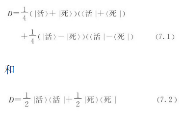 事实上,让观察者参与进来,(在上面7.1情形下)相应的态矢量各自具有以下形式
