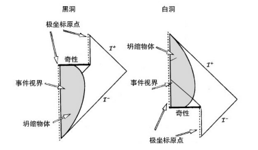 图7.5 黑洞和白洞的卡特彭罗斯图。