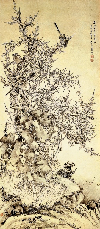 竹石梅鹊图 清 陈嘉言 纸本水墨 纵212X横97.8厘米 上海博物馆藏