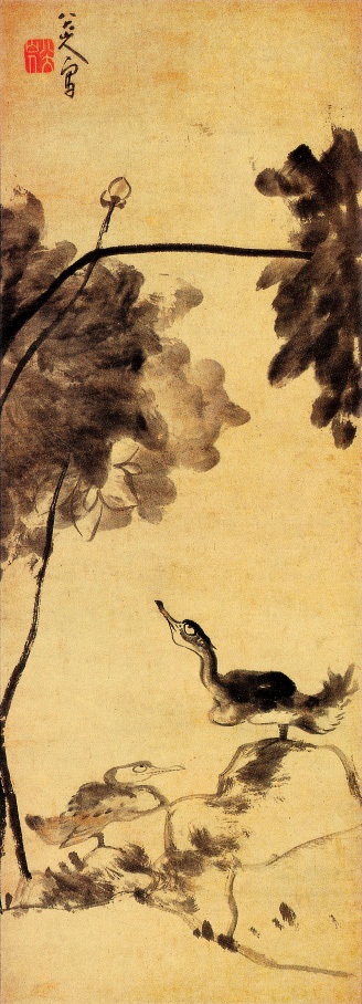 荷石水禽图 清 朱耷 纸本墨笔 纵114X横38.5厘米 旅顺市博物馆藏