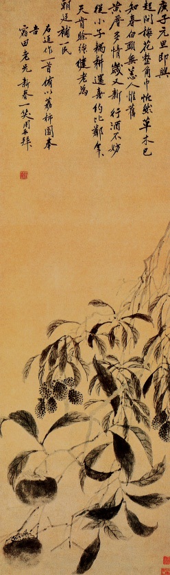 荔柿图 明 沈周 纸本墨笔 纵127.8X横38.5厘米 北京故宫博物院藏