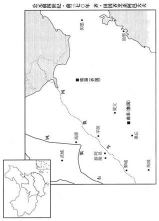 2齐国(首府临淄【山东省淄博市东临淄镇】)中央政府一向被担任国务官(大夫)的田姓家族严密控制。最初,田恒(成子)生田盘(襄子),田盘生田白(庄子),田白生田和(太公)。本年(前三九一年),田和把国君(三十二任康公)姜贷,驱逐出首府临淄,放逐到东方海边的一个不知名的小城,使他收取该城的赋税,维持对他祖先的祭祀。