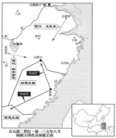 吴王刘濞动员所有的武装部队,下令说:“我年已六十有二,亲自统率大军。幼子年才十四岁,也将身先士卒。年纪大,跟我相等的人;年纪轻,跟我幼子相等的人,全部投入战场。”共二十余万人。派使节到闽越王国(首都东冶【福建省福州市】)、东海王国(首都东瓯【浙江省温州市】),两个王国都派军参战。