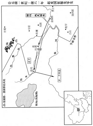3义渠安国抵达羌中(青海省东北部),召集先零部落重要首领三十余人欢宴,就在席间,逮捕最骄傲不驯的几个酋长,当场诛杀。并乘先零部落不备,发动突击,斩杀一千余人。于是,所有早已归降汉朝的西羌诸部落和被汉朝封为归义侯(羌侯)的酋长杨玉等,悲愤交集,认为羌人并没有任何违法行动,竟被卑鄙的害死,使他们不敢相信西汉政府的信义,遂全体叛变,联合其他种族部落,攻击城邑,杀戮汉朝官员。义渠安国以骑兵总监(骑都尉)身份,率骑兵二千人戒备,抵达浩亹(甘肃省永登县西南河桥镇。亹,音mén【门】),西羌各部落迎战,义渠安国大败,伤亡惨重,武器辎重,损失不可胜数,急行撤退到令居(甘肃省永登县西),奏报刘病已。