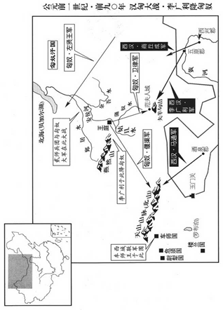 4匈奴汗国得到汉军大举进攻情报,坚壁清野,把所有粮秣辎重,全部北迁到郅居水(今色楞格河,流经蒙古国恰克图市以西,注入贝加尔湖。郅,音zhì【致】)之北。左贤王把东方各部落,全部带到佘吾水(土拉河,发源于肯特山【狼居胥山】,流经乌兰巴托市南,注入鄂尔浑河)以北六七百里的兜衔山(今地不详)。单于(十任)挛鞮狐鹿姑亲统精锐兵团渡过姑且水(图音河。流向蒙古车车尔勒格城南)。商丘成兵团挺进到岔路口,不见敌军,班师。匈奴汗国派遣大将跟李陵配合,率三万余骑兵,尾随追击,转战九日,到蒲奴水(翁金河。流向蒙古国车车尔勒格城东南),不能得手,才行撤退。