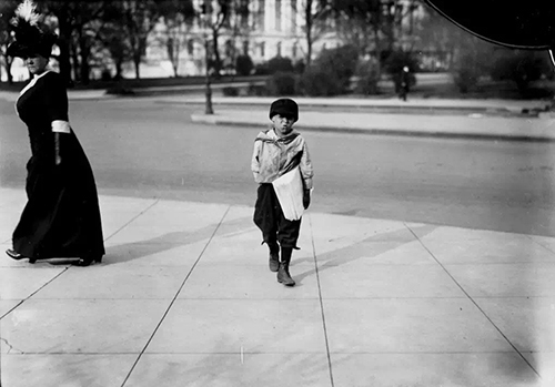 路易斯·韦克斯·海因(Lewis Hine)出生于美国威斯康星州,他一生的摄影作品,几乎都和工人的生活状况有关。生于贫困家庭,但他成功读上芝加哥大学和哥伦比亚大学,并曾在纽约市担任教师一职。在学校中,他鼓励学生多以摄影作为教学媒介,并常常和这班学生常常到处摄影。在1904年至1909年间,他就拍下了200多张的照片,最后更成为了一个摄影记者。