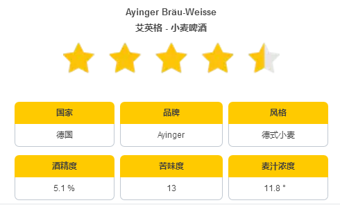 味道:饼干、香草、香蕉和一丝胡椒、花香型啤酒花的香料味和谐地结合在一起。