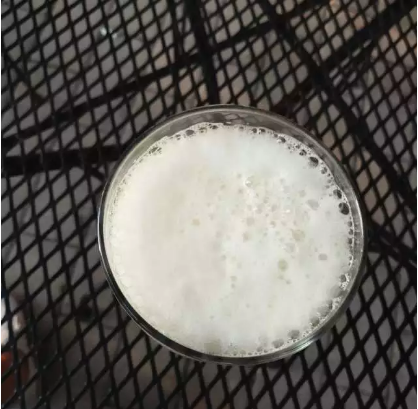 外观:倒出入杯后是略微清澈的金黄色酒体和洁白丰富的泡沫头。
