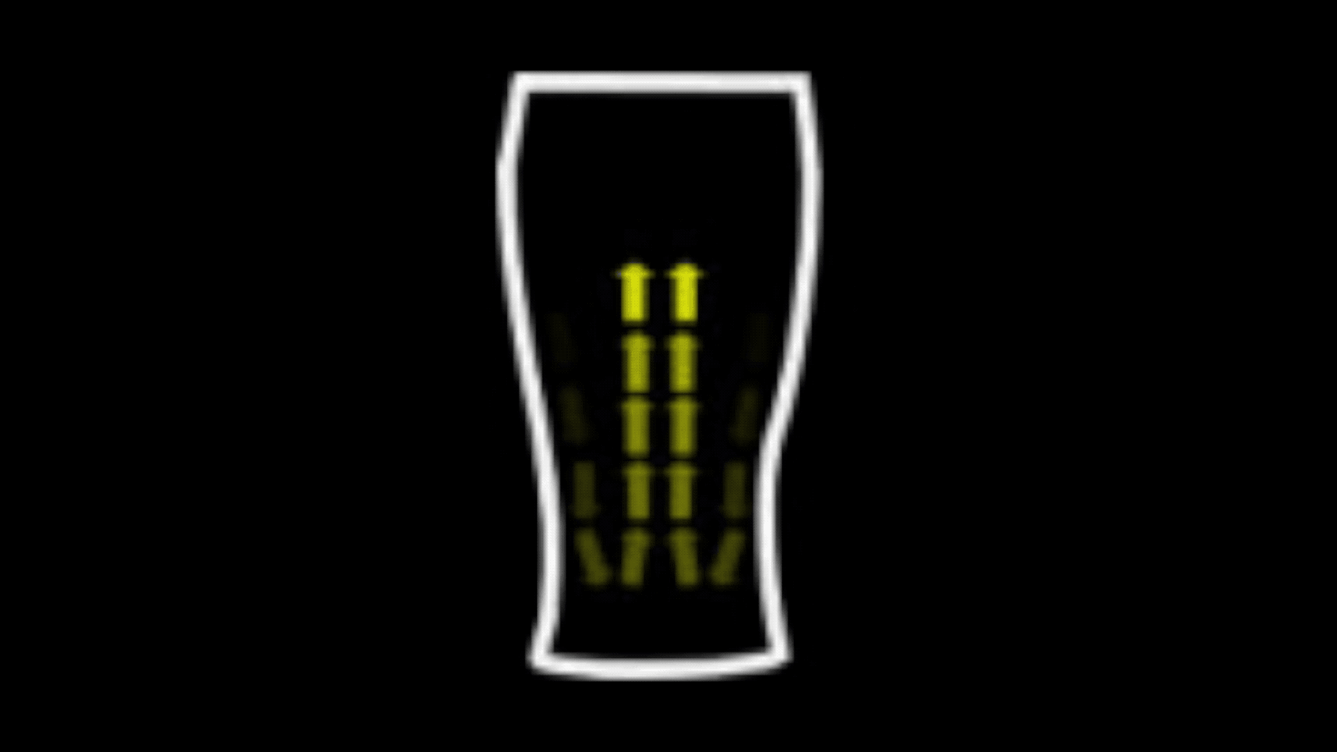 杯子中央快速上升的二氧化碳带动了啤酒向上流动,而杯子周围的啤酒被迫向下流动,这些微小的氮气气泡虽然有浮力往上拉,但依然拗不过向下的环流,便被一同拉下杯底,流入杯子的中央上升区。因此,我们便看到了白色的氮气泡在深色的世涛中向下翻滚。