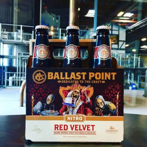 Ballast Point 最初的想法是打造一款粉红色的诱人啤酒,他们首先选择了一款 Double IPA,经过尝试后发现甜菜中的泥土味,好像搭配上巧克力才更为的合适。这个时候红丝绒蛋糕这个创意就被诞生了。