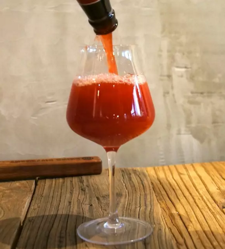 其实 Red Velvet 这款酒在加入甜菜粉之前就是金色的,我认为这种风格并不是哗众取宠的噱头,而是代表了酿酒师们有如此丰富的想象力,以及在他们的酒中倾注的无数智慧。