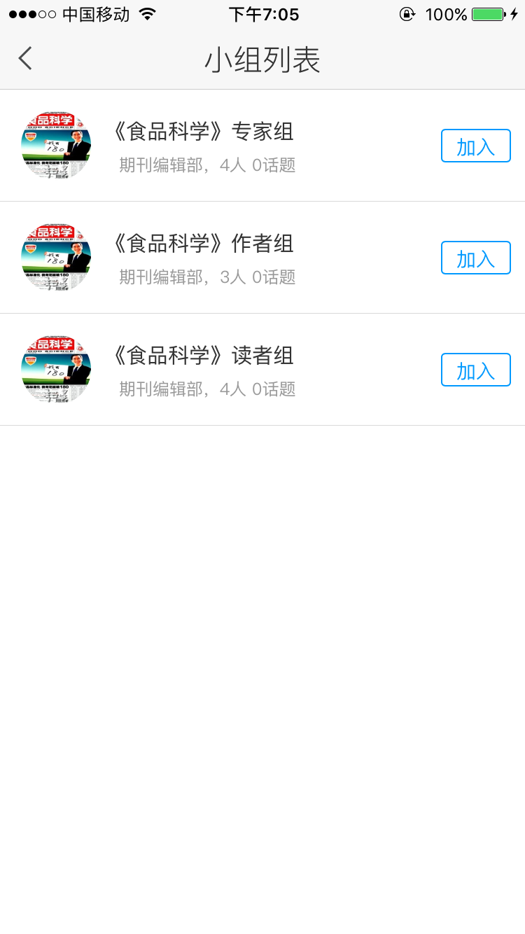 点击小组列表,可以看到和该期刊有关的小组,可申请加入。