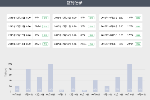课堂签到可以节省课堂点名时间,教师在移动端发布课堂签到,学生直接用手机通过扫描课堂大屏的二维码、或输入教师分享的邀请码等方式进行签到。签到结果可同步投射大教室的大屏上如下图所示: