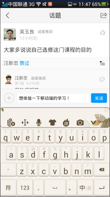 讨论是属于课程内部的讨论,学生可以从本功能实现建立自己发表的话题,也可以回复他人的话题。回复话题是指学生能回复学生的话题,也能跟帖教师发表的话题。话题都可以支持多次交互回复。