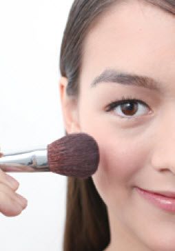 在双颊苹果肌上,轻轻扫上自然的胭脂颜色。