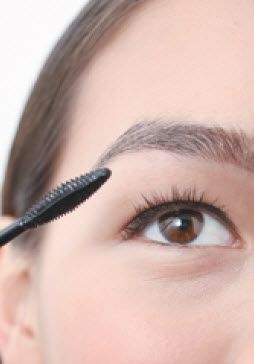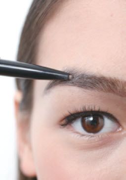 用眉笔、眉刷顺着眉形刷出双眉,眉笔色泽宜与自己头发颜色相近。