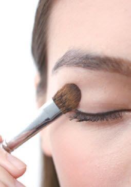 在眼盖(即眼窝)部分,扫上一层淡淡的眼影。眼影主要作用是加深眼睛轮廓。