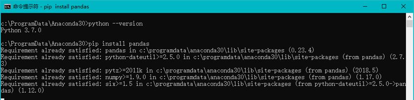 以上三个常用的库安装成功后,学习者则可立即进入本书内容的学习和实践。在各章节中,如有用到其他的第三方包,会特别提示说明,比如,urllib、requests、BeautifulSoup、folium、seaborn、OpenCV、TensorFlow等。