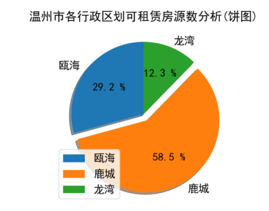 任务3:使用饼图展现温州市区可租赁房源数所占的百分比。