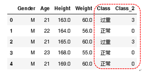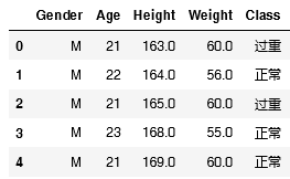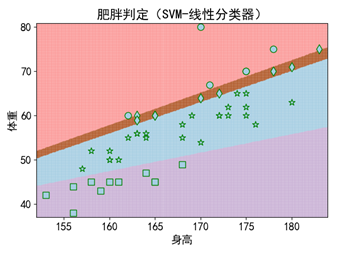 如图所示的样本数据中,给定了肥胖程度(过轻、正常、过重、肥胖)的样本数据。根据结果训练模型,用来判定肥胖程度。