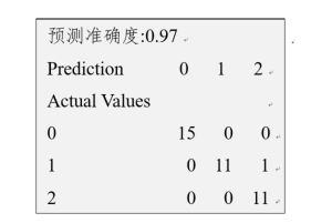 上述代码中对模型进行了简单评估,其预测准确度为0.97,具体显示结果如图所示。