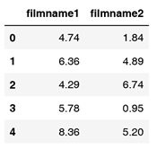 | #!/usr/bin/Python # -*- coding: utf-8 -*- data.head() X = data[['filmname1','filmname2']] |