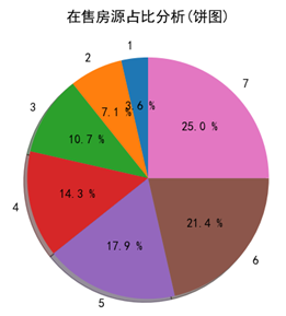 使用饼图对不同房间数的可售房源占比进行统计。示例结果如图所示。