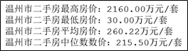 获取温州地区二手房房价的最值、平均值、中位数。结果示例如图所示。