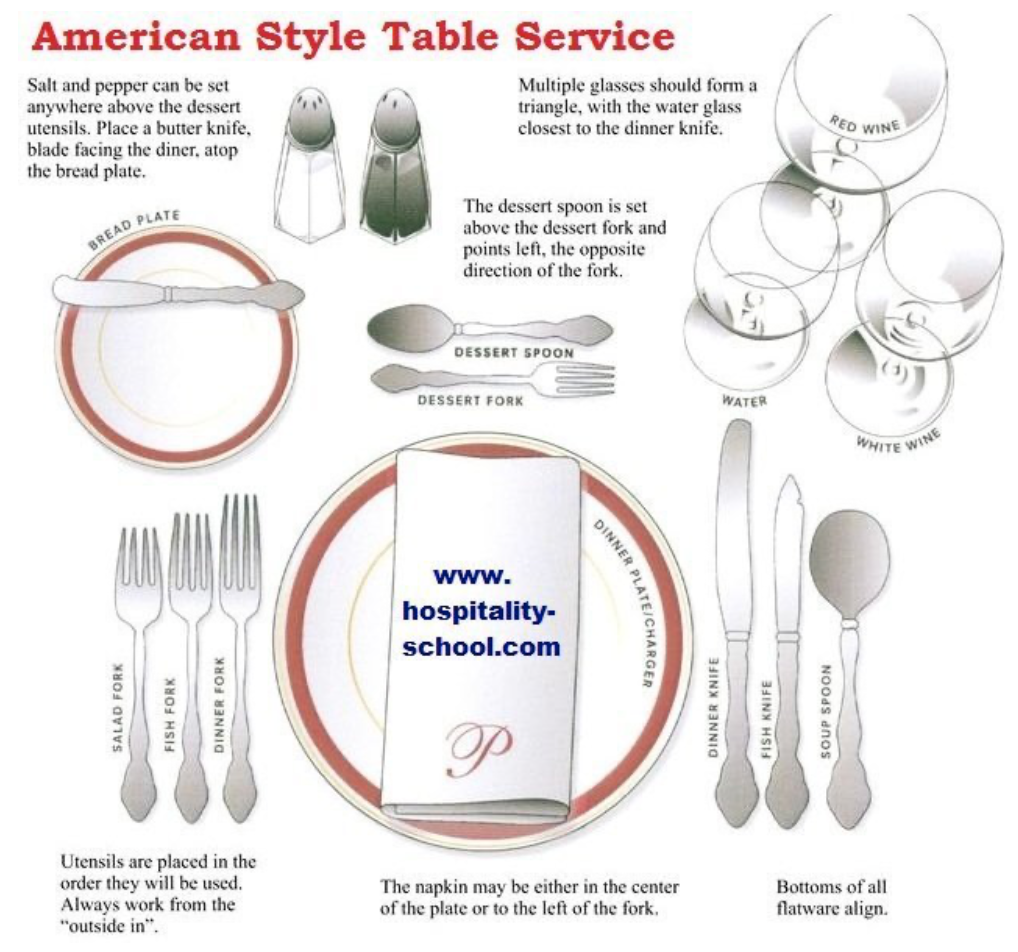 American service can be personalized according to the situations, such as breakfast, lunch, or dinner service.