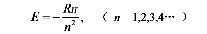 式中RH是常量 ,值为2.18×J,n称为主量子数,取整数值。n=1时能量最低,称为原子的基态,其它能量较高的状态都称为激发态。