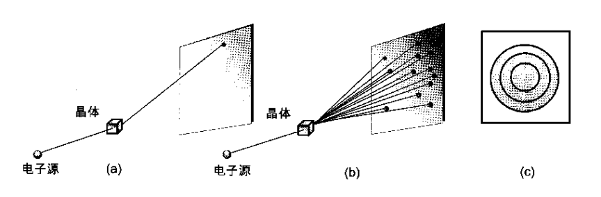 贝尔电话实验室的Davisson C J和Germer L H用电子束代替X射线通过一薄层镍的晶体 (作为衍射光栅),投射到照相底片上,得到了完全类似单色光通过小圆孔那样的衍射图象。