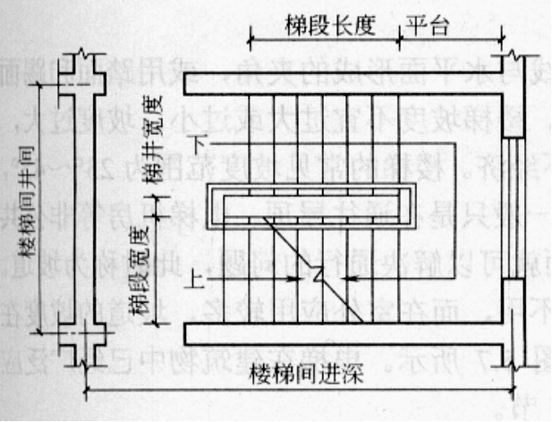 两个楼梯段之间空隙叫楼梯井。一般是为施工方便而设置,宽度一般在100mm左右,公共建筑不小于150mm,当净宽大于200mm时,应增设防护。