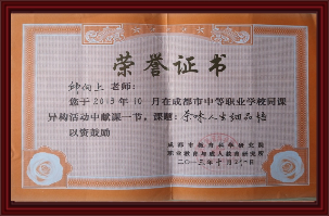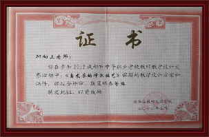 (4)2012年5月,在成都市中职学校教师教学设计竞赛活动中荣获区级三等奖。