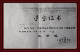 (3)2011年4月,在成都市中职学校师生技能竞赛旅游服务类茶艺项目中荣获二等奖。