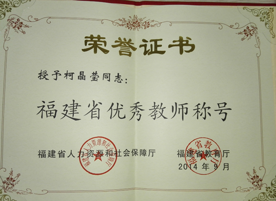 (6)柯晶莹.厦门工学院经济管理实验实训基地(闽教高〔2017〕34号),福建省实验教学示范中心,2017.12-,主持。