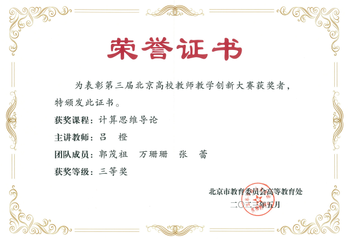 4、2023年,《计算思维导论》荣获第三届北京高校教师教学创新大赛三等奖