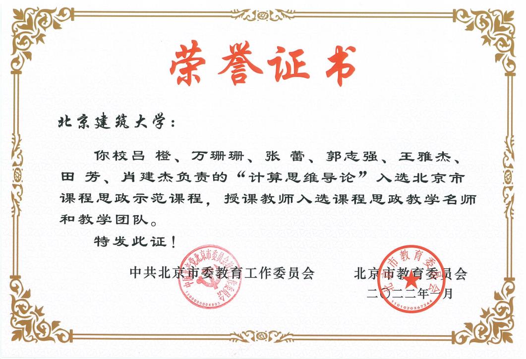 3、2021年,《计算思维导论》课程荣获“北京市课程思政示范课程”